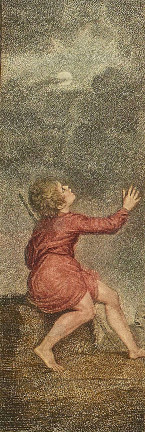 Starting with this painting of St. John, a total of eleven canvases in the British Institution exhibit served as designs for these windows (No. 62 - No. 72). Only the painting for the window's central nativity scene was missing from the 1813 show. It never left Belvoir Castle, where it was destroyed in the 1816 fire. Individually, the designs were also reproduced as prints.